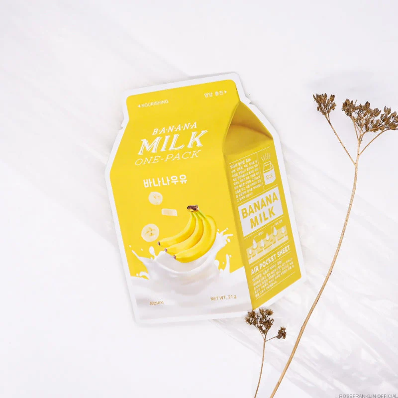 Revitalisiere und nähre die Haut mit der Apieu Banana Milk Sheet Mask! Diese feuchtigkeitsspendende Maske hilft, trockene, stumpfe und raue Haut wiederzubeleben. Bananenextrakt, Gelée Royale-Extrakt und Milchextrakt helfen, die Vitalität der Haut wiederherzustellen, sie mit Feuchtigkeit zu versorgen und sie aufzuhellen, während Mistelextrakt hilft, den Teint zu glätten.